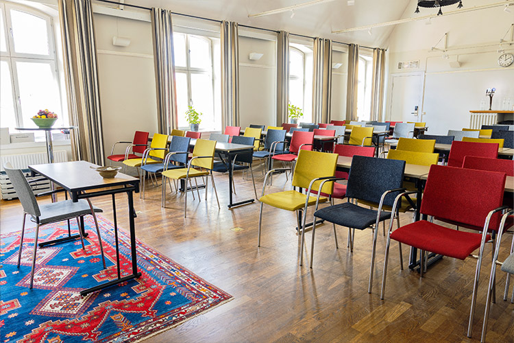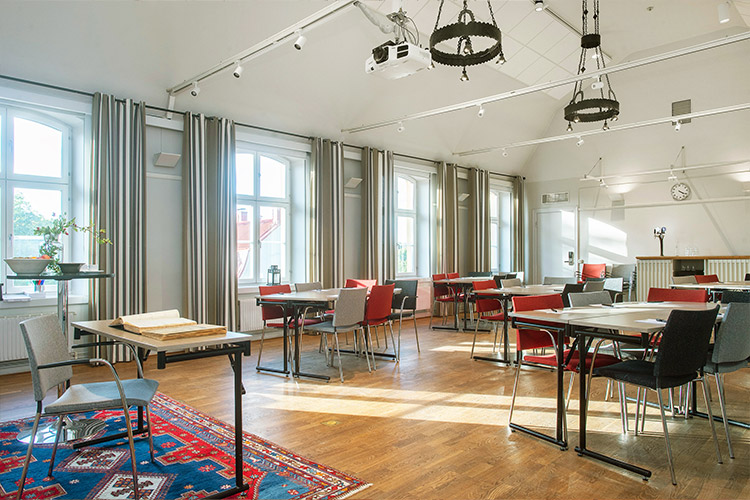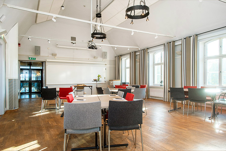 Vår största sal högst upp i Kronohäktet med mycket ljus och med högt i tak.